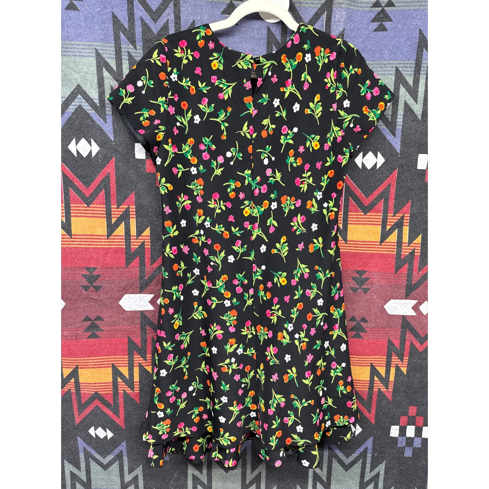 90s Vintage Hampton Dress Co Black Floral Mini Dress