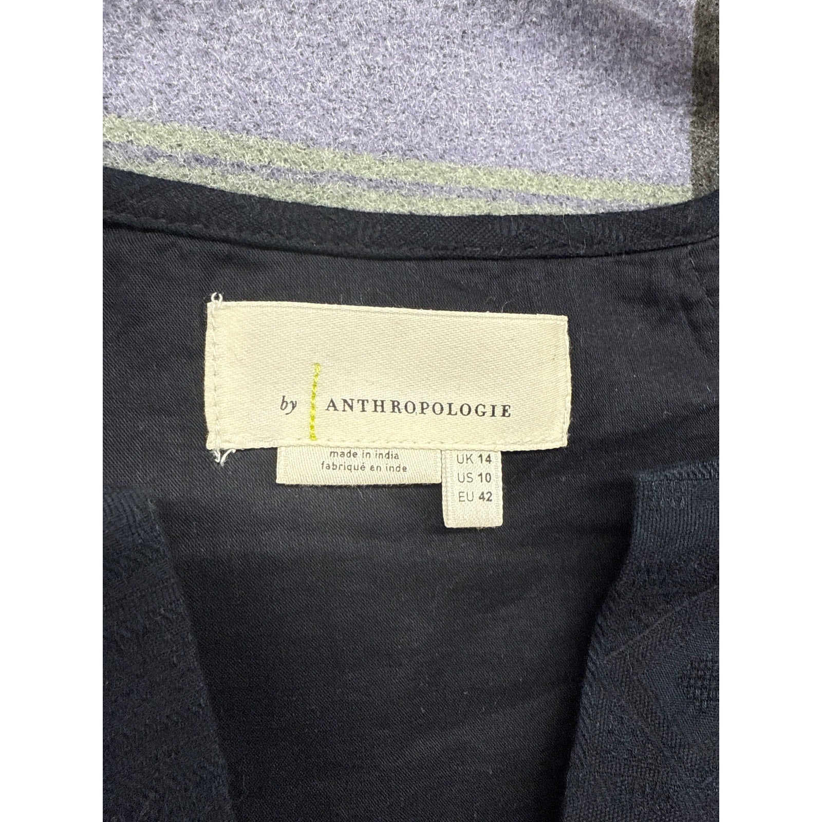 Anthropologie Navy Linen Cap Sleeve Dress 10 Embroidered Pleated Boho Wedding