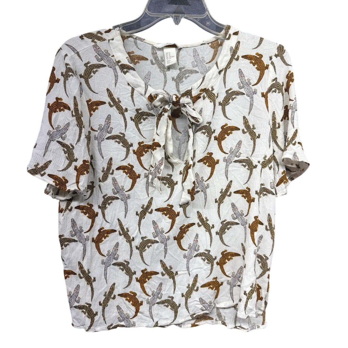 H&M Blouse Bow 14 Alligator Novelty Print Twee Quirky Art Crocodile African
