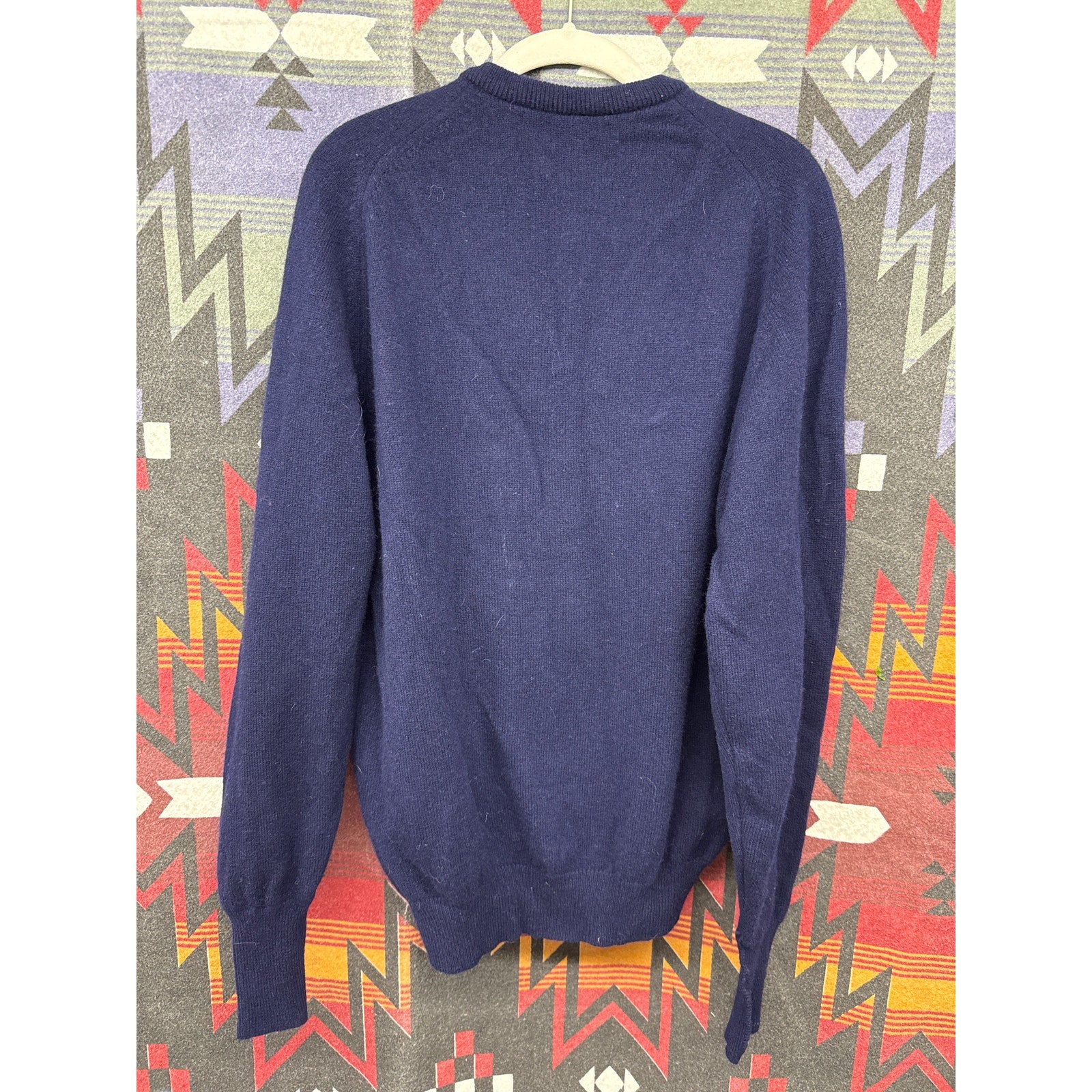 Elevate your winter wardrobe with this handsome Pendleton men's sweater! Crafted from luxurious virgin wool, this navy blue sweater is perfect for the holidays or any chilly day. Offers a timeless look and exceptional warmth. V- Neck