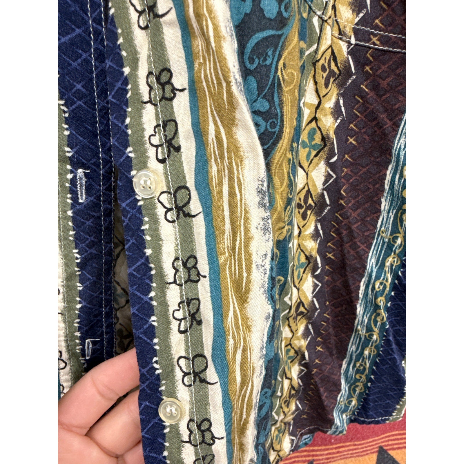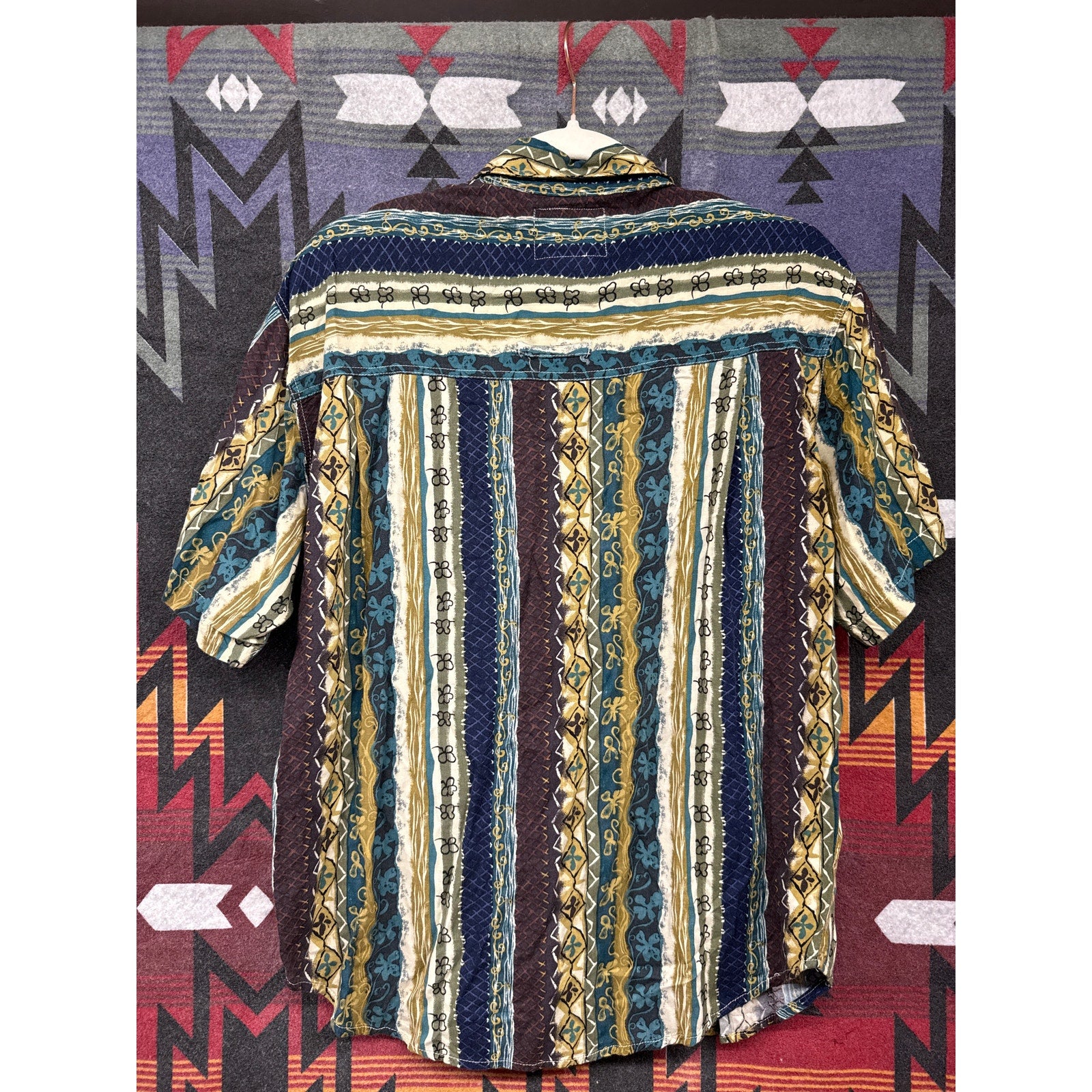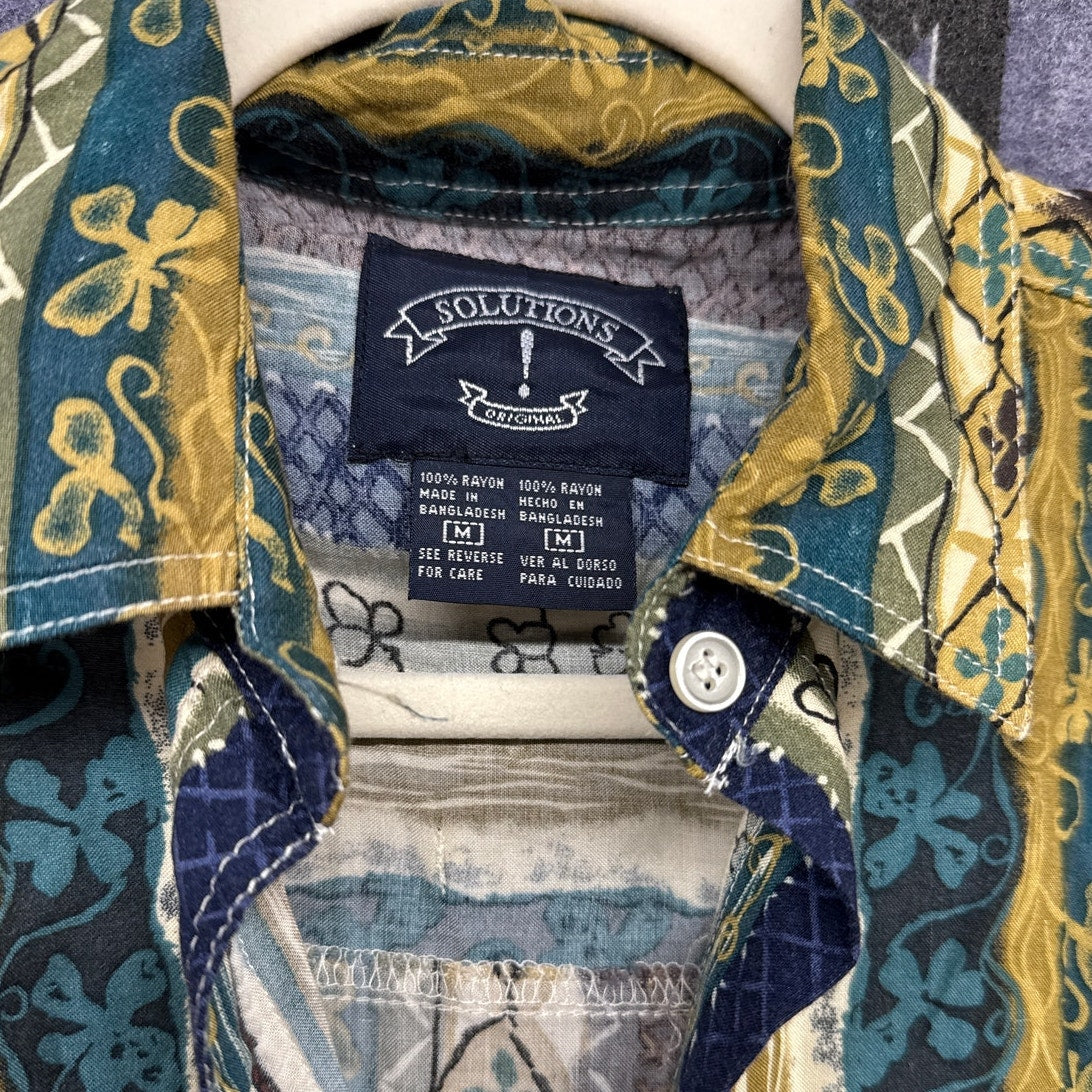 Solutions Men's Vintage Button Down Shirt Striped Medium Floral Funky 70s Vibes